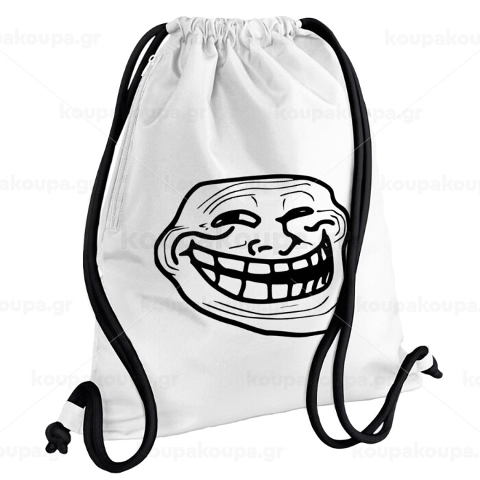 Troll face, Τσάντα πλάτης πουγκί GYMBAG λευκή, με τσέπη (40x48cm) & χονδρά κορδόνια