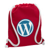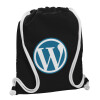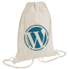 Wordpress, Τσάντα πλάτης πουγκί GYMBAG λευκή, με τσέπη (40x48cm) & χονδρά κορδόνια