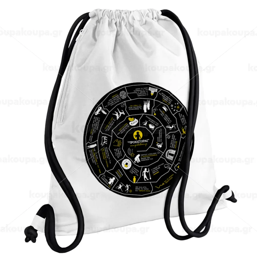 Προχίστορας, Τσάντα πλάτης πουγκί GYMBAG λευκή, με τσέπη (40x48cm) & χονδρά κορδόνια