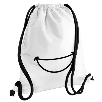 Χαμογέλα, Τσάντα πλάτης πουγκί GYMBAG λευκή, με τσέπη (40x48cm) & χονδρά κορδόνια