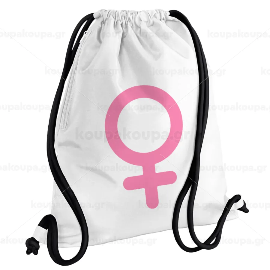 FEMALE, Τσάντα πλάτης πουγκί GYMBAG λευκή, με τσέπη (40x48cm) & χονδρά κορδόνια