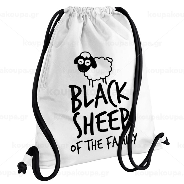 Black Sheep of the Family, Τσάντα πλάτης πουγκί GYMBAG λευκή, με τσέπη (40x48cm) & χονδρά κορδόνια