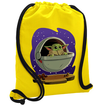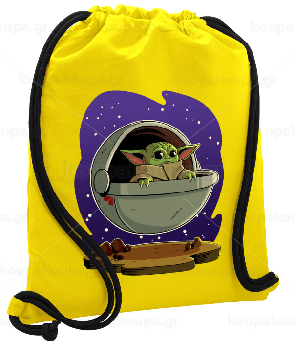 Baby Yoda mandalorian, Τσάντα πλάτης πουγκί GYMBAG Κίτρινη, με τσέπη (40x48cm) & χονδρά κορδόνια