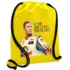 If You Ain't First You're Last Ricky Bobby, Talladega Nights, Τσάντα πλάτης πουγκί GYMBAG Κίτρινη, με τσέπη (40x48cm) & χονδρά κορδόνια