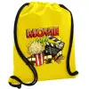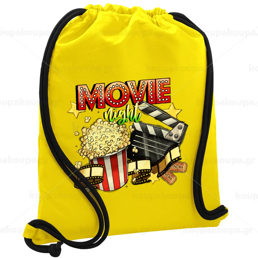 Movie night, Τσάντα πλάτης πουγκί GYMBAG Κίτρινη, με τσέπη (40x48cm) & χονδρά κορδόνια
