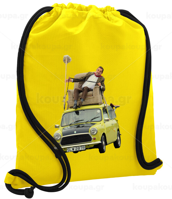 Mr. Bean mini 1000, Τσάντα πλάτης πουγκί GYMBAG Κίτρινη, με τσέπη (40x48cm) & χονδρά κορδόνια