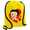 Betty Boop, Τσάντα πλάτης πουγκί GYMBAG Κίτρινη, με τσέπη (40x48cm) & χονδρά κορδόνια