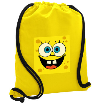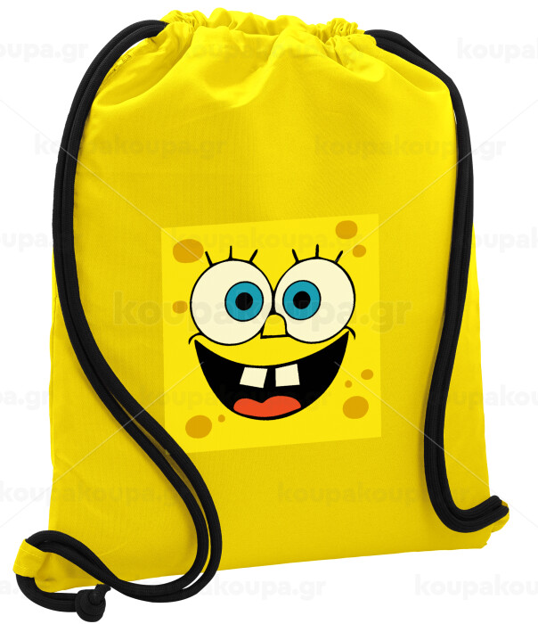 Μπομπ, Τσάντα πλάτης πουγκί GYMBAG Κίτρινη, με τσέπη (40x48cm) & χονδρά κορδόνια
