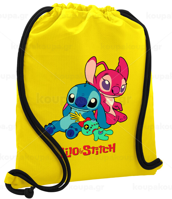 Lilo & Stitch, Τσάντα πλάτης πουγκί GYMBAG Κίτρινη, με τσέπη (40x48cm) & χονδρά κορδόνια