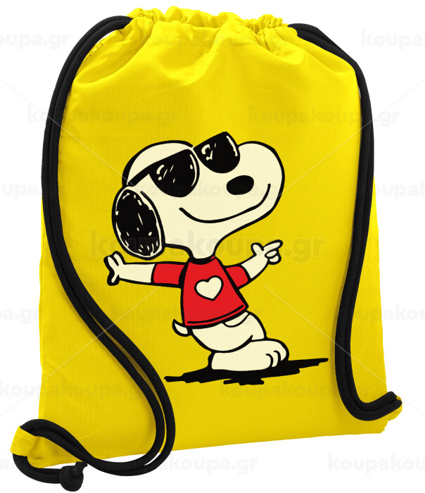 Snoopy καρδούλα, Τσάντα πλάτης πουγκί GYMBAG Κίτρινη, με τσέπη (40x48cm) & χονδρά κορδόνια
