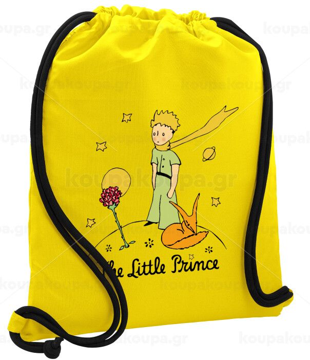 Ο μικρός πρίγκιπας classic, Τσάντα πλάτης πουγκί GYMBAG Κίτρινη, με τσέπη (40x48cm) & χονδρά κορδόνια