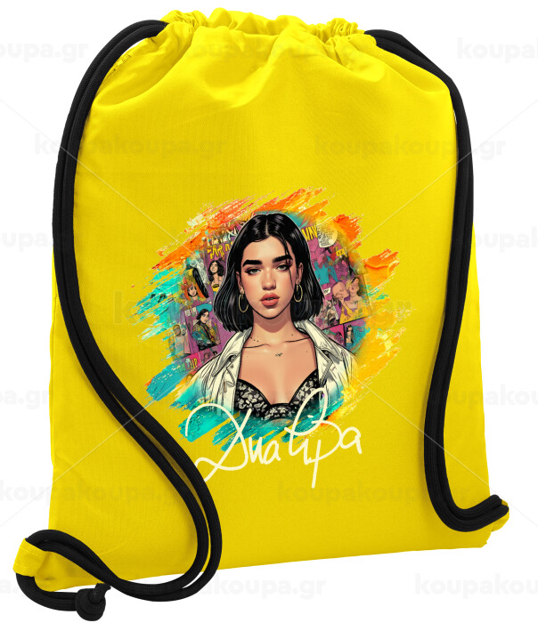Dua lipa, Τσάντα πλάτης πουγκί GYMBAG Κίτρινη, με τσέπη (40x48cm) & χονδρά κορδόνια