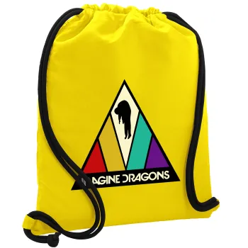 Imagine Dragons, Τσάντα πλάτης πουγκί GYMBAG Κίτρινη, με τσέπη (40x48cm) & χονδρά κορδόνια