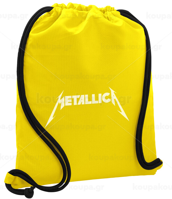 Metallica, Τσάντα πλάτης πουγκί GYMBAG Κίτρινη, με τσέπη (40x48cm) & χονδρά κορδόνια