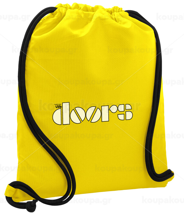 The Doors, Τσάντα πλάτης πουγκί GYMBAG Κίτρινη, με τσέπη (40x48cm) & χονδρά κορδόνια