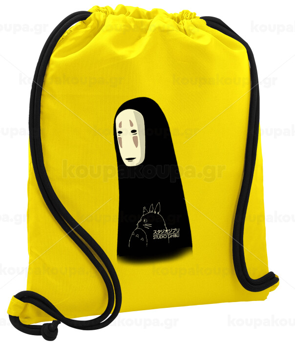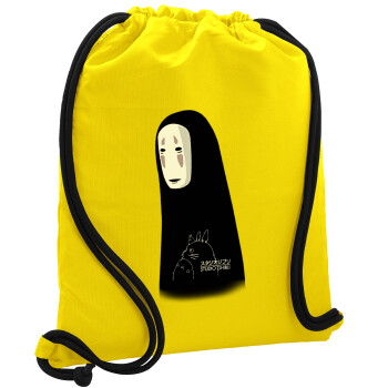 Spirited Away No Face, Τσάντα πλάτης πουγκί GYMBAG Κίτρινη, με τσέπη (40x48cm) & χονδρά κορδόνια