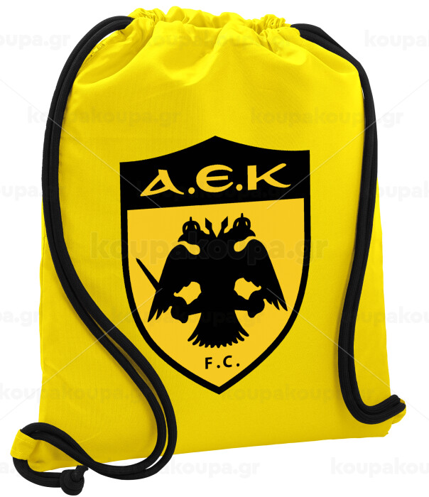 ΑΕΚ, Τσάντα πλάτης πουγκί GYMBAG Κίτρινη, με τσέπη (40x48cm) & χονδρά κορδόνια