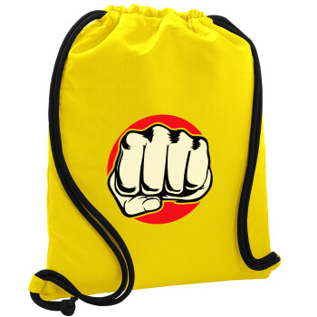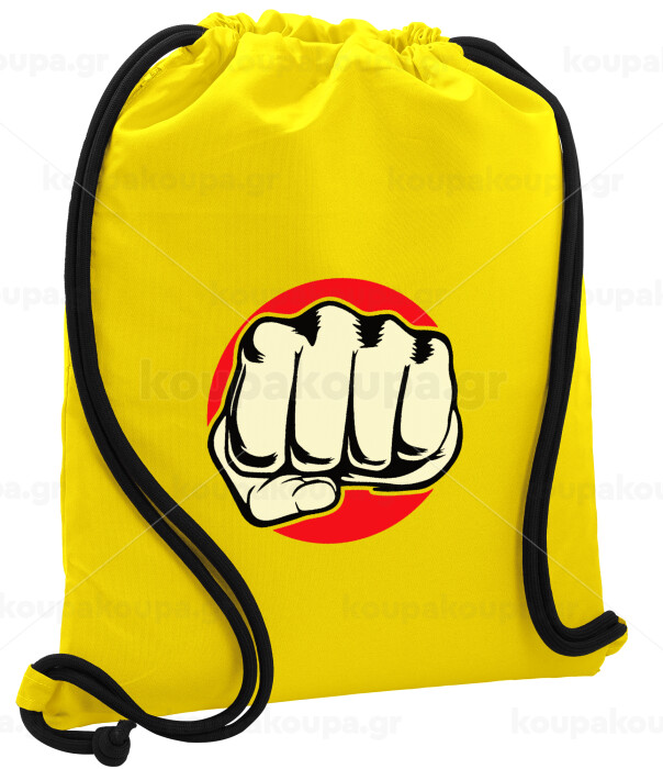 Γροθιά (punch), Τσάντα πλάτης πουγκί GYMBAG Κίτρινη, με τσέπη (40x48cm) & χονδρά κορδόνια