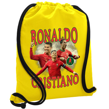 Κριστιάνο Ρονάλντο, Τσάντα πλάτης πουγκί GYMBAG Κίτρινη, με τσέπη (40x48cm) & χονδρά κορδόνια