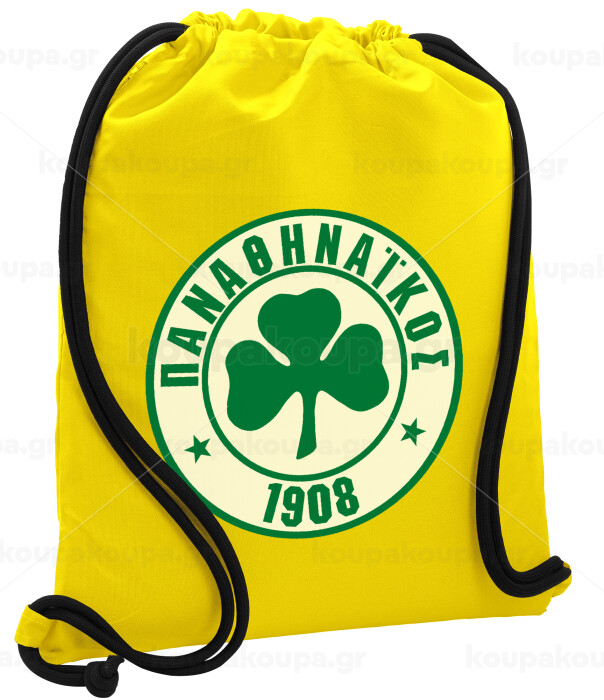 ΠΑΟ Παναθηναϊκός, Τσάντα πλάτης πουγκί GYMBAG Κίτρινη, με τσέπη (40x48cm) & χονδρά κορδόνια