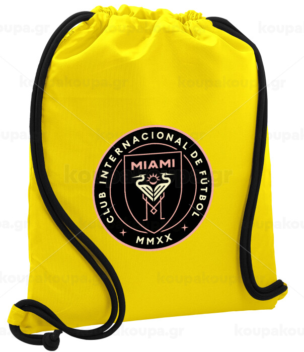 Ίντερ Μαϊάμι (Inter Miami CF), Τσάντα πλάτης πουγκί GYMBAG Κίτρινη, με τσέπη (40x48cm) & χονδρά κορδόνια