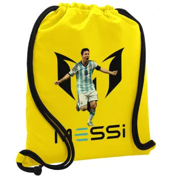 Λιονέλ Μέσι, Leo Messi, Τσάντα πλάτης πουγκί GYMBAG Κίτρινη, με τσέπη (40x48cm) & χονδρά κορδόνια