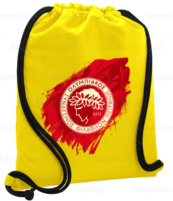 Olympiacos F.C., Τσάντα πλάτης πουγκί GYMBAG Κίτρινη, με τσέπη (40x48cm) & χονδρά κορδόνια
