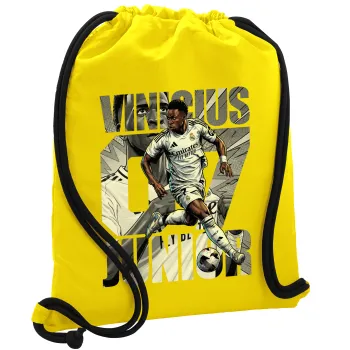 Vinícius Júnior (Βινίσιους Ζούνιορ), Τσάντα πλάτης πουγκί GYMBAG Κίτρινη, με τσέπη (40x48cm) & χονδρά κορδόνια