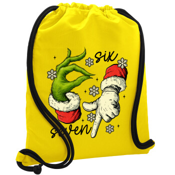 Christmas Meme SIX SEVEN (67), Τσάντα πλάτης πουγκί GYMBAG Κίτρινη, με τσέπη (40x48cm) & χονδρά κορδόνια