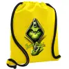 Grinch, eww people, Τσάντα πλάτης πουγκί GYMBAG Κίτρινη, με τσέπη (40x48cm) & χονδρά κορδόνια
