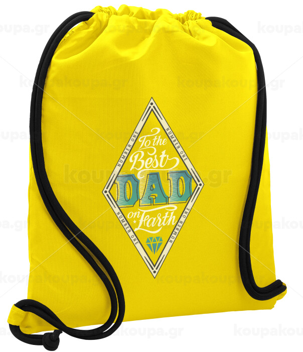 To the best DAD on earth, Τσάντα πλάτης πουγκί GYMBAG Κίτρινη, με τσέπη (40x48cm) & χονδρά κορδόνια