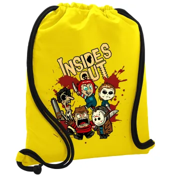 Halloween Inside out, Τσάντα πλάτης πουγκί GYMBAG Κίτρινη, με τσέπη (40x48cm) & χονδρά κορδόνια