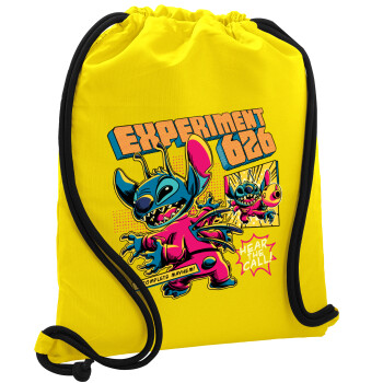 Stitch Experiment 626, Τσάντα πλάτης πουγκί GYMBAG Κίτρινη, με τσέπη (40x48cm) & χονδρά κορδόνια