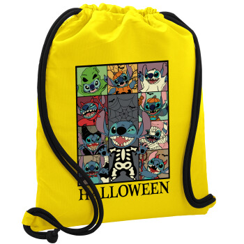 Stitch Halloween, Τσάντα πλάτης πουγκί GYMBAG Κίτρινη, με τσέπη (40x48cm) & χονδρά κορδόνια