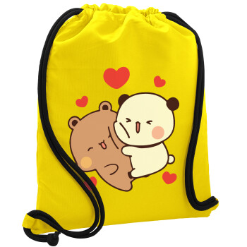 Bubu & Dudu, Τσάντα πλάτης πουγκί GYMBAG Κίτρινη, με τσέπη (40x48cm) & χονδρά κορδόνια