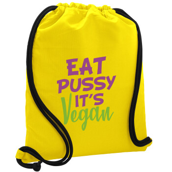 EAT pussy it's vegan, Τσάντα πλάτης πουγκί GYMBAG Κίτρινη, με τσέπη (40x48cm) & χονδρά κορδόνια