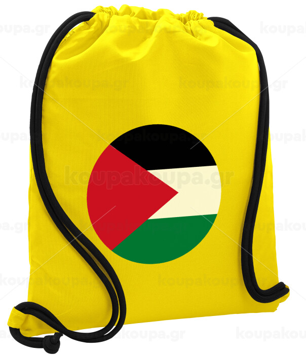 Σημαία Παλαιστίνης, Τσάντα πλάτης πουγκί GYMBAG Κίτρινη, με τσέπη (40x48cm) & χονδρά κορδόνια