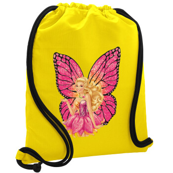 Barbie Νεράιδα, Τσάντα πλάτης πουγκί GYMBAG Κίτρινη, με τσέπη (40x48cm) & χονδρά κορδόνια