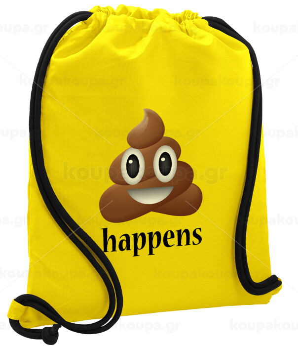 Shit Happens, Τσάντα πλάτης πουγκί GYMBAG Κίτρινη, με τσέπη (40x48cm) & χονδρά κορδόνια