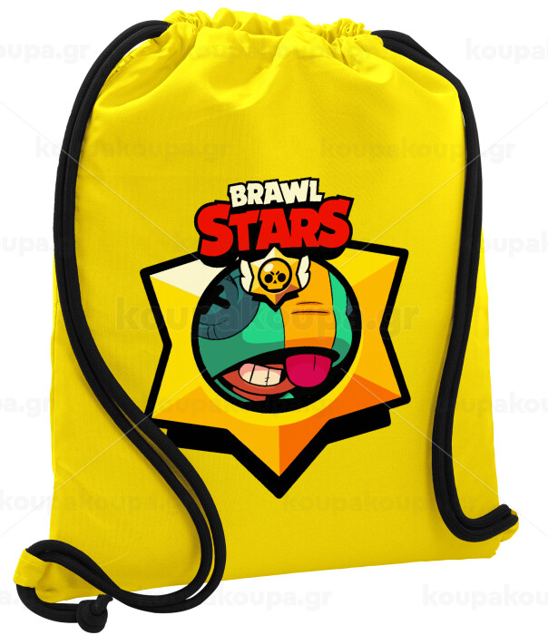 Brawl Stars Leon, Τσάντα πλάτης πουγκί GYMBAG Κίτρινη, με τσέπη (40x48cm) & χονδρά κορδόνια