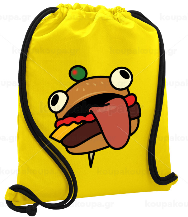 Fortnite Durr Burger, Τσάντα πλάτης πουγκί GYMBAG Κίτρινη, με τσέπη (40x48cm) & χονδρά κορδόνια