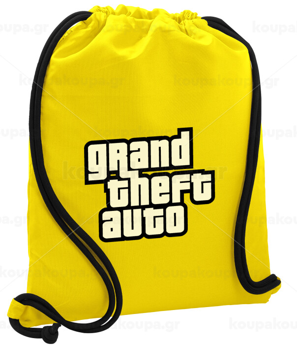 GTA (grand theft auto), Τσάντα πλάτης πουγκί GYMBAG Κίτρινη, με τσέπη (40x48cm) & χονδρά κορδόνια