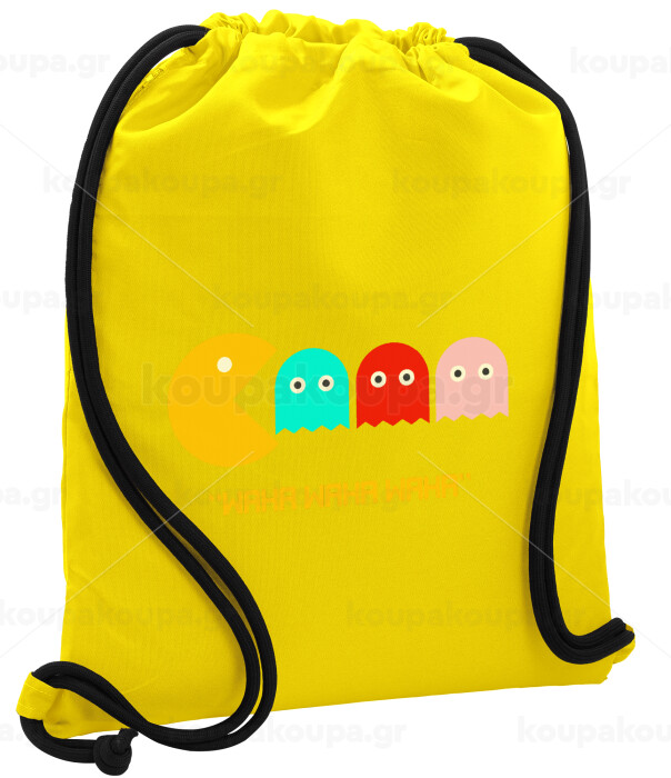 Pacman waka waka waka, Τσάντα πλάτης πουγκί GYMBAG Κίτρινη, με τσέπη (40x48cm) & χονδρά κορδόνια