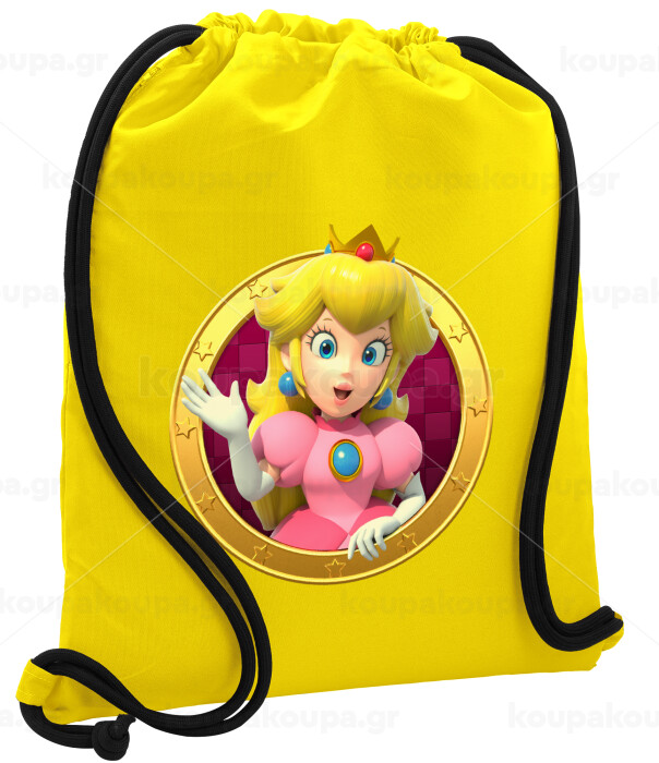 Princess Peach Toadstool, Τσάντα πλάτης πουγκί GYMBAG Κίτρινη, με τσέπη (40x48cm) & χονδρά κορδόνια