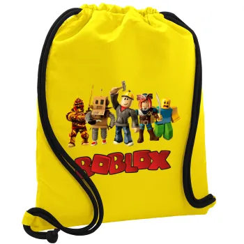 Roblox squad, Τσάντα πλάτης πουγκί GYMBAG Κίτρινη, με τσέπη (40x48cm) & χονδρά κορδόνια