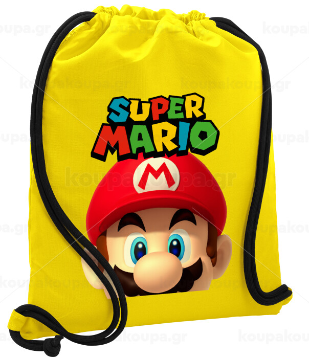 Super mario, Τσάντα πλάτης πουγκί GYMBAG Κίτρινη, με τσέπη (40x48cm) & χονδρά κορδόνια