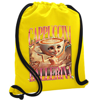 BALLERINA CAPUCHINA FUNK, Τσάντα πλάτης πουγκί GYMBAG Κίτρινη, με τσέπη (40x48cm) & χονδρά κορδόνια