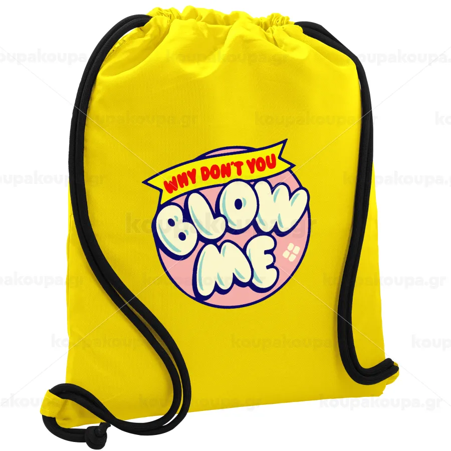 Why Don't You Blow Me Funny, Τσάντα πλάτης πουγκί GYMBAG Κίτρινη, με τσέπη (40x48cm) & χονδρά κορδόνια