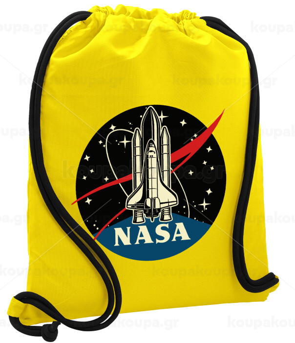 NASA Badge, Τσάντα πλάτης πουγκί GYMBAG Κίτρινη, με τσέπη (40x48cm) & χονδρά κορδόνια