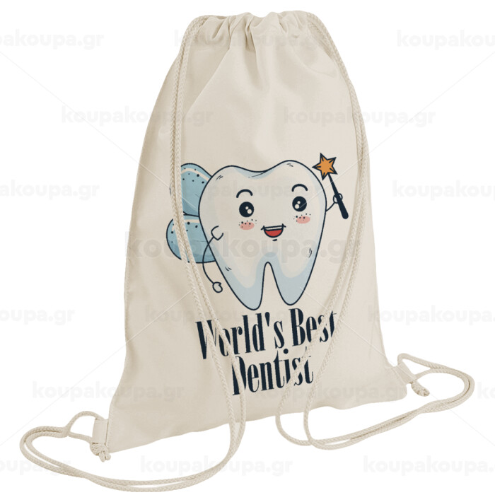 World's Best Dentist, Τσάντα πλάτης πουγκί GYMBAG natural (28x40cm)